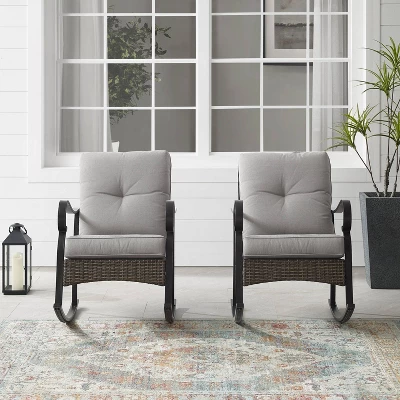 2pk Dahlia Outdoor Steel Rocking Chairs Taupe/Matte Black - Crosley -Cheap Crosley Store GUEST c819235c e51f 4eca a101 be743521ca47