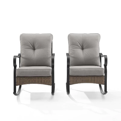 2pk Dahlia Outdoor Steel Rocking Chairs Taupe/Matte Black – Crosley