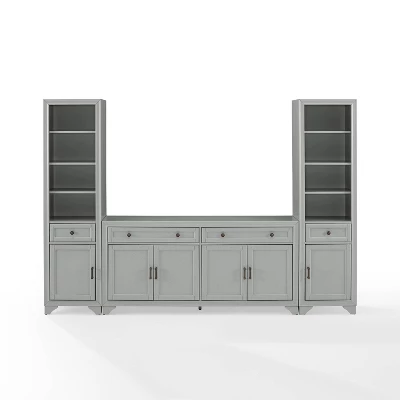 Whether you love a traditional look or a modern farmhouse vibe, the Tara 3pc Sideboard and Bookcase Set brings stylish organization to your home. Ready to store a variety of household items, this set is a fabulous addition to a dining room or home office. The sideboard features two wide full-extension drawers and two large cabinets with adjustable shelves. Each bookcase has a full-extension drawer, plus three open, adjustable shelves, making the Tara 3pc Sideboard and Bookcase Set a great option for home storage. OVERALL PRODUCT DIMENSIONS: 97”W X 15”D X 67.63”H