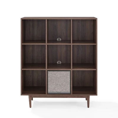 The Liam 9 Cube Bookcase with Speaker is simple, stunning, and ready to play. Featuring nine cubes sized to fit standard vinyl records, this bookcase comes with a Bluetooth speaker that blends seamlessly into the design. The three center cubes have perforated cord management holes making placement of the powerful 40W speaker on any of those shelves quick and easy. Stylish and innovative, this bookcase features tapered legs and clean lines. Add mid-century swagger to any room of your home with the Liam 9 Cube Bookcase with Speaker.