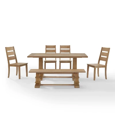 4pc Joanna Dining Set With Bench And 4 Ladder Back Chairs Rustic Brown – Crosley