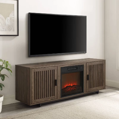 No need to sacrifice style for storage with the Silas 58” Low-Profile Tv Stand with Fireplace. Featuring modern elements like faux vertical slats and an all-metal frame base, this tv console brings mid-century vibes wherever it goes. The cabinets offer adjustable shelving for flexibility, while the center section showcases an electric fireplace for keeping cozy. Ideal for TVs up to 65”, this fireplace tv stand is ready to class up any room.