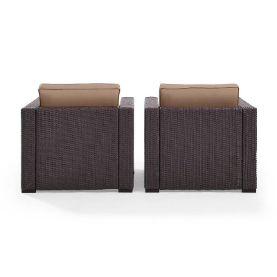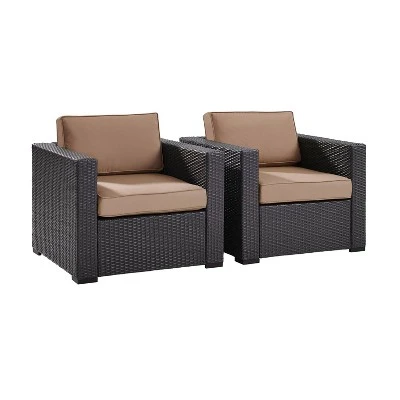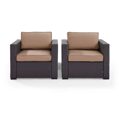 Entertaining outdoors gets an upgrade with the Biscayne 2pc Chair Set. Stylish and durable, these chairs feature all-weather resin wicker over powder-coated steel frames. The deep seats of the chairs offer comfort with lush moisture-resistant cushions. Relax with a book or lounge with a friend, on the Biscayne chair set.