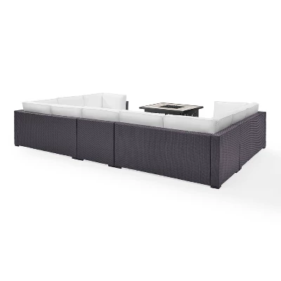 Biscayne 6pc Outdoor Wicker Conversation Set With Fire Pit – White – Crosley