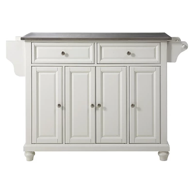 Create the culinary space of your dreams with a Cambridge, Stainless Steel Top, Kitchen Island from Crosley. Constructed of solid hardwood with wood veneers, this kitchen island is designed for longevity. The hardwearing stainless steel top expands your serving and countertop space while built-in cabinets and drawers offer extra storage. Raised panel detailing provides the ultimate in style to dress up any space. Style, function, and quality make this island a versatile, must-have addition to your kitchen space.