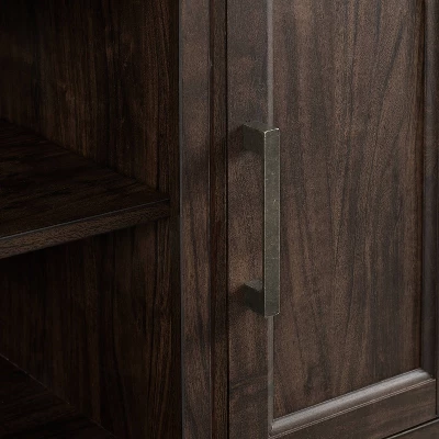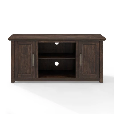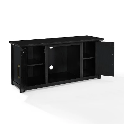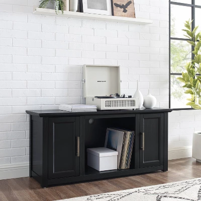 Gather together for a family movie night with the Camden Low Profile TV Stand. This TV stand features two cabinets with an adjustable shelf in each, offering ample storage for your books, video games, or other media. The open storage in the center has an adjustable and removable shelf, plus two pre-cut holes in the back for cable management. Sized to fit most TV’s up to 60 inches, the Camden Low Profile TV Stand exudes rustic style with the look of wood-grain and substantial metal hardware.