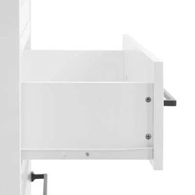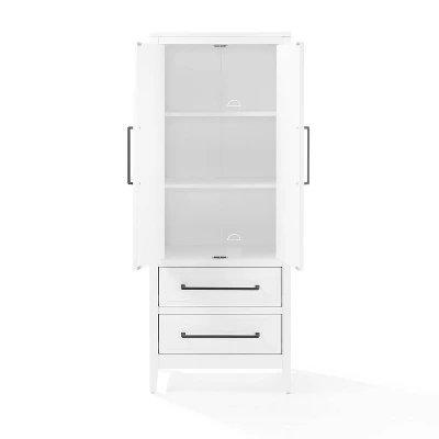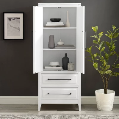 Versatile kitchen organization and storage with classic styling make the Genevieve Storage Pantry a perfect addition to your home. Featuring adjustable shelves and cable management holes, this freestanding storage cabinet accommodates everything from kitchenware to electronics. Two lower drawers offer ample storage for things like cooking utensils, office supplies, or even extra blankets. Scaled to fit any size room, this pantry is kitchen organization at its finest. Assembled dimensions 24” w x 14” d x 60” h