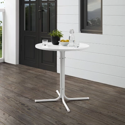 The Griffith Bistro Table brings simplicity and function for your outdoor retreat. Featuring a powder-coated finish over durable steel, this bistro table can partner with a variety of outdoor seating. With a sturdy pedestal base, this table can easily tuck between your favorite outdoor chairs, making the Griffith Bistro Table ideal for small balcony or patio.