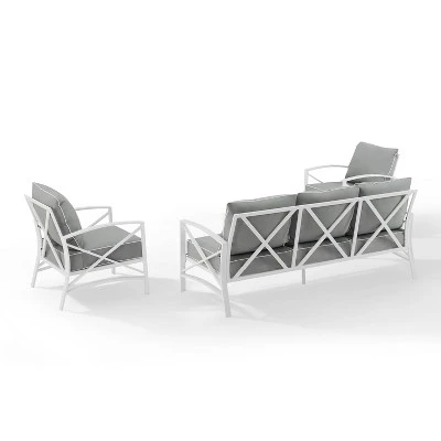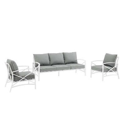 Kaplan 3pc Outdoor Sofa Set With Sofa & 2 Arm Chairs – Gray – Crosley