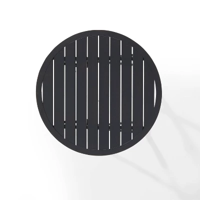 Add an intimate spot for outdoor dining to your balcony or patio with the Kaplan Folding Bistro Table. Sized perfectly to sit between two dining chairs, this powder-coated steel table has a classic slatted top and folds for easy storage. With a simple transitional design, the Kaplan bistro table pairs beautifully with a variety of seating styles.
