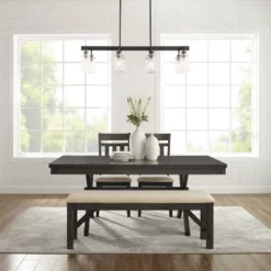 Hayden 4pc Extendable Dining Set With Bench And 2 Slat Back Chairs Slate – Crosley
