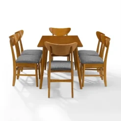7pc Joanna Dining Set With 6 Upholstered Back Chairs Rustic Brown – Crosley