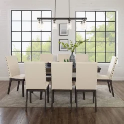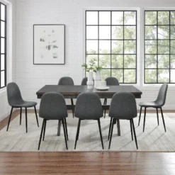 9pc Hayden Extendable Dining Set With 8 Upholstered Chairs Slate – Crosley