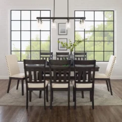 9pc Joanna Dining Set With 8 Upholstered Back Chairs Rustic Brown – Crosley