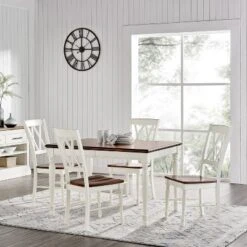 5pc Shelby Round Dining Set With 4 Chairs Distressed White – Crosley