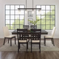 7pc Hayden Extendable Dining Set With 6 Upholstered Chairs Slate – Crosley