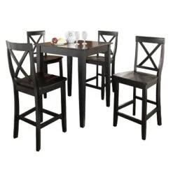 5pc Pub Dining Set With Upholstered Saddle Stools Black – Crosley