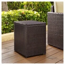 Crosley Palm Harbor Outdoor Wicker Round Side Table In Brown