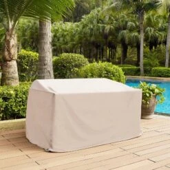 Outdoor Square Table & Ottoman Furniture Cover – Tan – Crosley