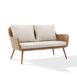 Palm Harbor 2pc Outdoor Wicker Seating Set With Loveseat & Glass Top Table Sand – Crosley