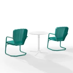 Ridgeland 3pc Outdoor Bistro Set With Table & 2 Chairs – Turquoise Gloss – Crosley