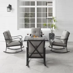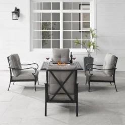5pc Dahlia Outdoor Steel Set With Fire Table Taupe/Matte Black – Crosley