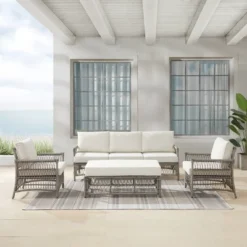 4pc Thatcher Outdoor Steel Seating Set Creme/Driftwood – Crosley