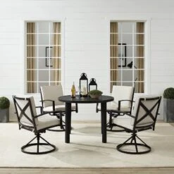 5pc Kaplan Outdoor Steel Round Dining Set With Swivel Chairs Oatmeal/Bronze – Crosley
