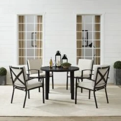 5pc Kaplan Outdoor Steel Round Dining Set Oatmeal/Bronze – Crosley