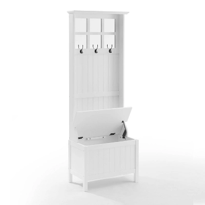 Add a touch of cottage charm to your foyer with the Plymouth Hall Tree. Classic beadboard accents and a windowpane mirror elevate this hall tree’s functional design. The lift-top bench keeps clutter at bay with its deep storage and soft-close hinge. With hooks for hanging coats and bookbags, the Plymouth Hall Tree makes coming home or heading out a breeze.