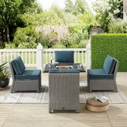 Crosley 5pc Bradenton Steel Outdoor Patio Fire Pit Furniture Set With Armless Chairs