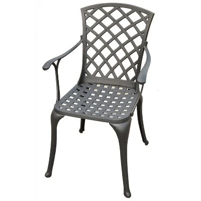 Enjoy an evening relaxing under the stars with the Sedona 2pc High Back Armchair Set. Stylish and built to last, these chairs are made from a sturdy cast-aluminum with a powder-coat finish. The wide, contoured seats have a unique lattice design which complements the crisscross pattern and delicate leaf accents of the chair backs. Perfect for your garden patio or front porch, the Sedona armchairs offer outdoor seating with classic charm.