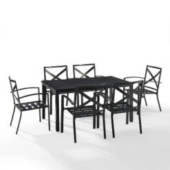 Kaplan 7pc Outdoor Dining Set With 6 Arm Chairs & Dining Table Oatmeal/Oil Rubbed Bronze – Crosley