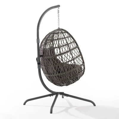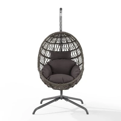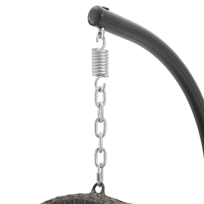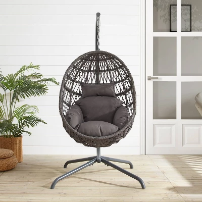 Indulge in the cozy bohemian style of the Tess Hanging Egg Chair. With all-weather rattan wicker over a steel frame, this chair is great both indoors or outside. Featuring a tufted cushion and durable steel stand, the Tess Hanging Egg Chair is a perfect hideaway for relaxation.